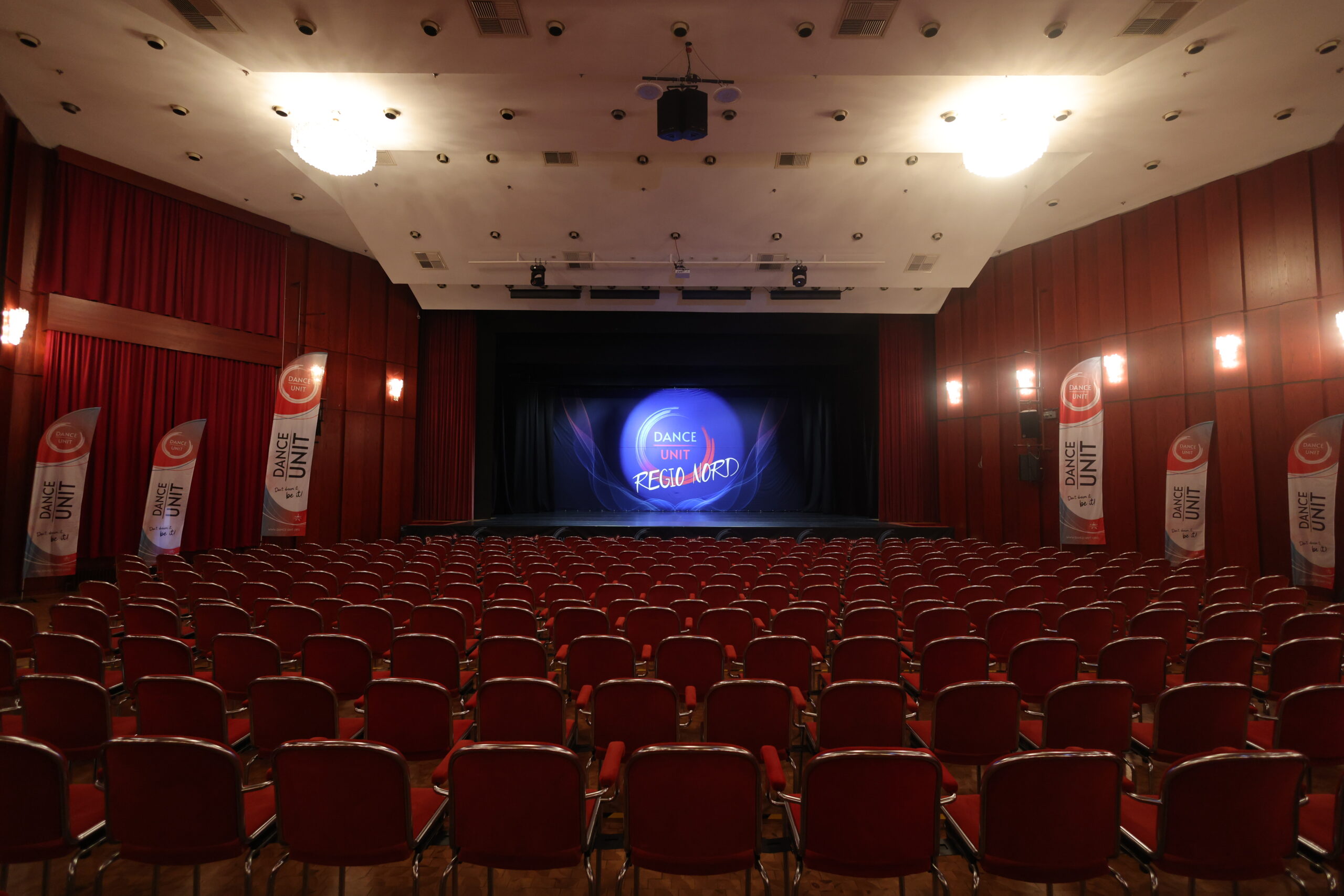 The venue features a beautiful theater hall with seating for around 400–450 guests. Its authentic theater setting creates the perfect environment for dancers to perform on a real stage in front of an engaged audience.